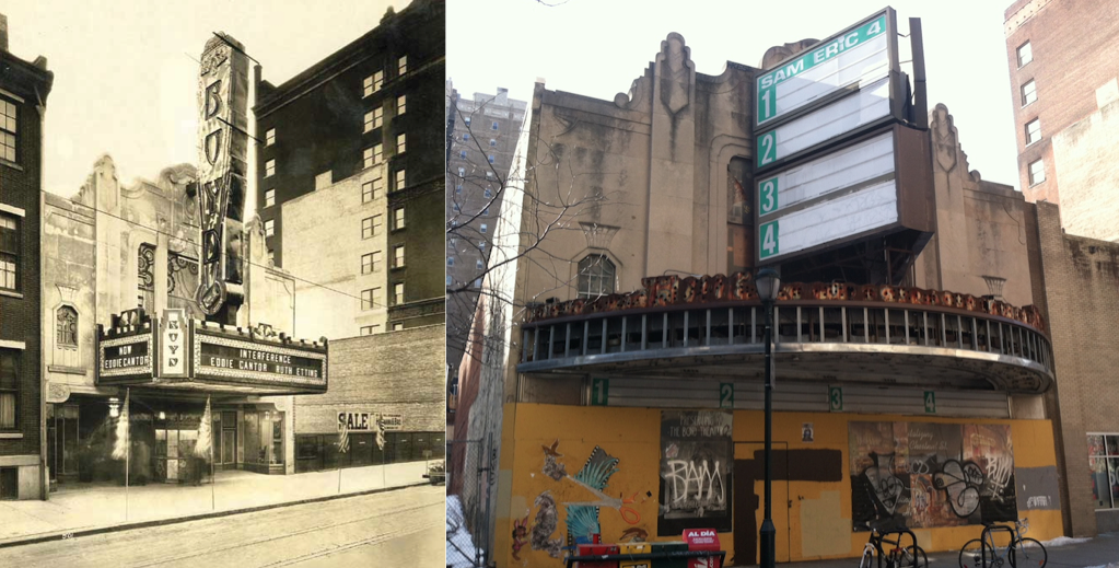 As I write this, demolition is underway at Philadelphia’s Boyd Theatre. Opened in 1928, it was once Philly’s largest movie palace, but when it closed in 2002, it was a mere shadow of itself. A team of people (called the Friends of the Boyd — Howard B. Haas is its President), led a heroic effort to save it. But though there may be some continuing legal skirmishes, it’s now clear the Boyd has been acquired by Live Nation, who will substantively gut the building. (That they’re doing this in order to put up a new film theater is only one of many ironies in this story.)
