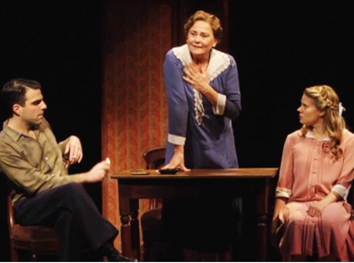 The sore thumb here was Zachary Quinto. Playing Tom – Amanda’s son and Laura’s brother – Quinto looked and acted like neither of them. He’s physically swarthy, and far more contemporary in manner. (It exacerbated the problem that Brian J. Smith, who played Jim – the only actual outsider in this play – seemed much more likely in every way to be related to the women.) In scene after scene, Quinto looked like he’d wandered into the wrong apartment.