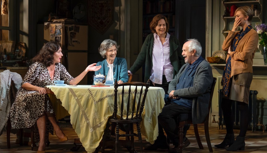 DF: So, let’s talk about what the play seems ostensibly, at least, to be about: the ravages of aging, as embodied particularly in André’s dementia. Although it isn’t entirely clear, much of the murky perception of events seems to come through André’s unreliable point of view, which mixes up timelines and relationships. Thus, we the audience must attempt to piece together fragments about the family dynamic, which also includes two daughters (Amanda Drew and Lisa O’ Hare), a mistress (Lucy Cohu), and a no-nonsense but loving wife (Atkins, of course—she’s practically patented this persona).