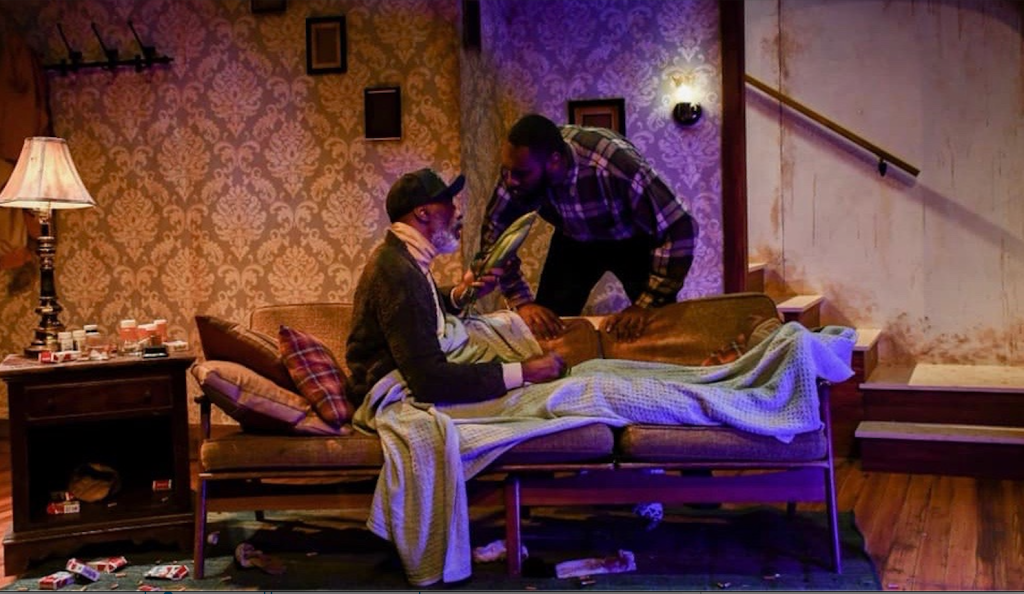 And if Shepard is often thought of as a spokesman for forgotten white men, director Dane Eissler’s production here resets that button. The extended family—Dodge and Halie, the patriarch and matriarch; their adult sons, Tilden and Bradley, and Tilden’s adult son, Vince—are black. Only the visitors—Vince’s girlfriend, Shelly; and the family preacher, Father Dewis—are white. This adds a new and apt sense of universality to Buried Child, which is often thought of as Shepard’s deepest examination of a signature topic: generational rot in a family.