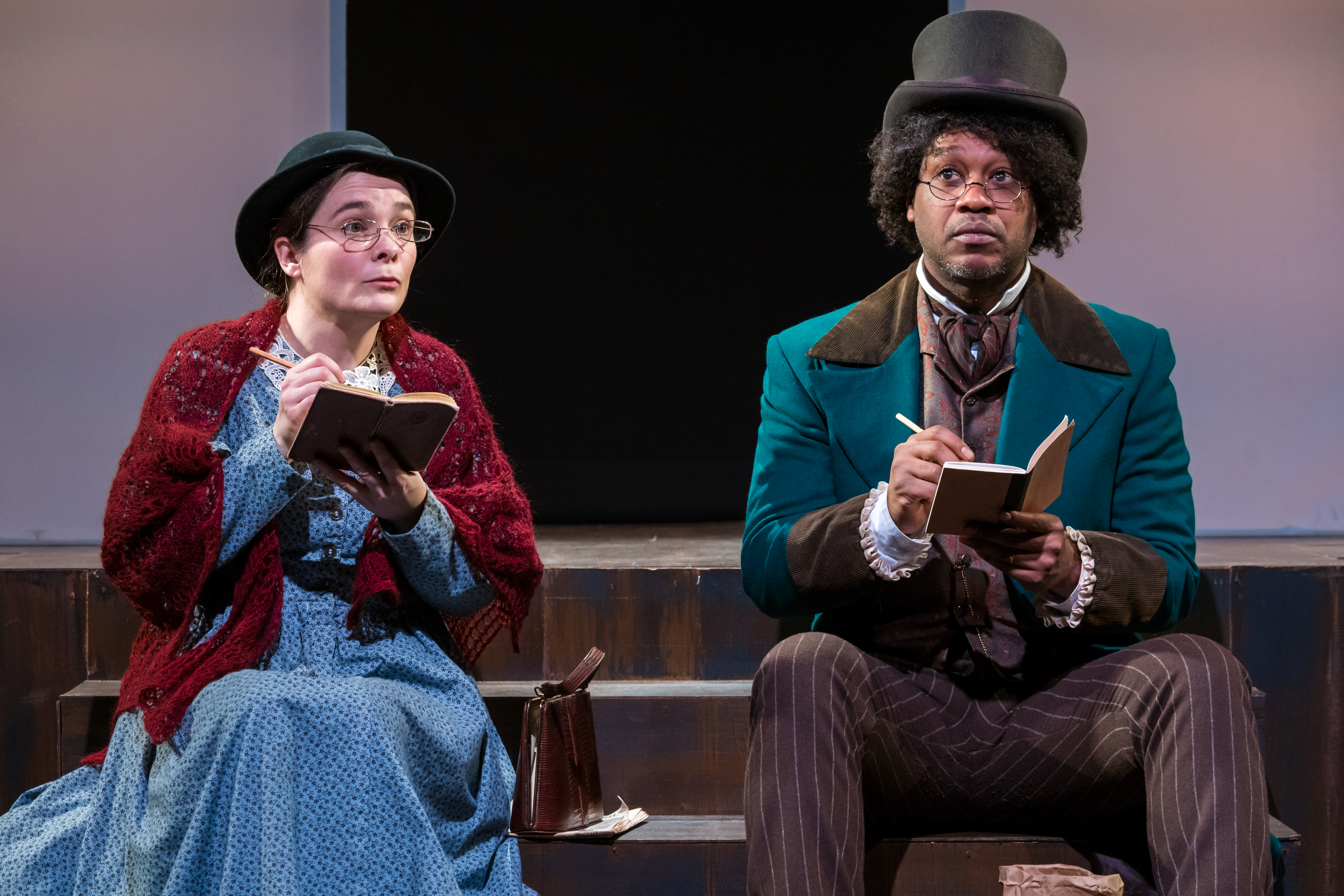 Occasionally, that winky tone overtakes The Agitators. In what I take to be an effort to make these two 19th Century superheroes seem more human and accessible, Smart occasionally adopts a too-cozy tone. (Frankly, I winced when Anthony introduces herself with a peach cobbler, in a way I find similarly awkward in The Belle of Amherst, when Emily Dickinson—one of our more ferocious poets—brags about her Indian bread recipe.) That, and some necessary but clumsy exposition, give a few scenes the tone of a museum exhibit.