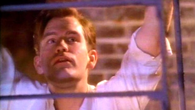 David Fox: Sepia-toned indeed, though to me at least in some prints, it looks more orange-y than that. I actually saw this in a movie theater when it first opened, and remember remarking to my companion that it looked to be shot through marmalade. Watching it again, I realize it’s subtler than that—really, there are two color palettes. The sepia stands in for memory, while a colder silvery gray marks the framing device, as Tom visits the ruins of their old neighborhood and now-vacant apartment. To me, both are problematic. Today’s world is too explicitly realistic—and, more critically, the marmalade-glazed past is far too sentimental…