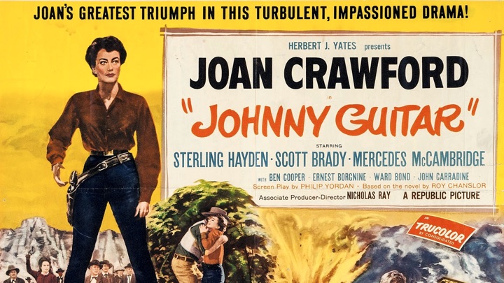 Cameron Kelsall: I occasionally teach a course on film aesthetics in the 1950s, and I try to balance the syllabus between well-known movies from the Golden Age and more outré fare. Of course, even the most familiar entries tend to be obscure to the average 18-to-22-year-old, and hard as I try, few leave with a lasting appreciation for Sunset Blvd. or Some Like It Hot. However, one title that I program nearly every semester ends up captivating the crowd without fail, with most students choosing it as their final paper topic. That film is Johnny Guitar, the delightfully subversive Western by director Nicholas Ray that features one of Joan Crawford’s most iconic performances. Ray mastered a balance between familiarity and weirdness that audiences can’t help being drawn toward—I know that’s one of the main reasons why I continue coming back to it. And it’s nice to find a Western that isn’t just shot through with testosterone. Make no mistake: the title role may be Johnny Guitar, embodied by the stiff but earnest Sterling Hayden, but the show belongs to Crawford’s gunslinging Vienna.