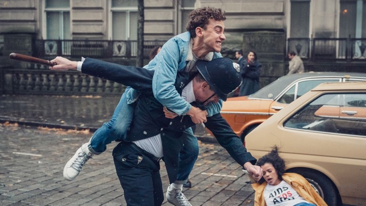 Cameron Kelsall: David, one of our first ventures together was a collaborative review of The Inheritance, Matthew Lopez’s sprawling, two-part theatrical exploration of the gay generational divide. Although AIDS was not the central theme of that play, much of its drama hinged on the chasm between older gay men who lived through the epidemic and younger gay men who came of age in the shadow of its darkest days, and how those experiences irrevocably shaped their worldviews. At the risk of sounding cold, my memories of The Inheritance (a year and a half removed from seeing it) align largely with my perception of many AIDS dramas: regardless of whether they’re contemporaneous accounts or backward glances, they often indulge in maudlin sentimentalizing that serves to cheapen a devastatingly human reality. So one of the reasons I was drawn to Russell T Davies’ miniseries It’s a Sin—which recounts the grim early days of the epidemic in London—was the advanced press that suggested an unromanticized evocation of that era. (The five-episode series premiered on Channel 4 in the U.K., and is now available through HBO Max.) As an American, I was also eager to gain a broader perspective of how AIDS was treated internationally. Although I have quibbles here and there, I can safely say that this is the gay drama I’ve been waiting for: a genuinely devastating drama that doesn’t treat its characters like lambs waiting for the slaughter or overdose on weepiness, and a queer narrative that unapologetically centers the queer perspective. In short, a must-watch.