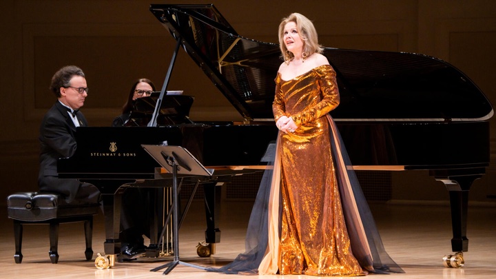When I last heard Fleming in recital, at Philadelphia’s Verizon Hall in 2017, the program toggled between opera arias, pop songs, and standards. Between numbers, she chatted with the audience, often reaching for a microphone secreted inside the belly of the piano. To call it a concert would probably be more accurate and appropriate.