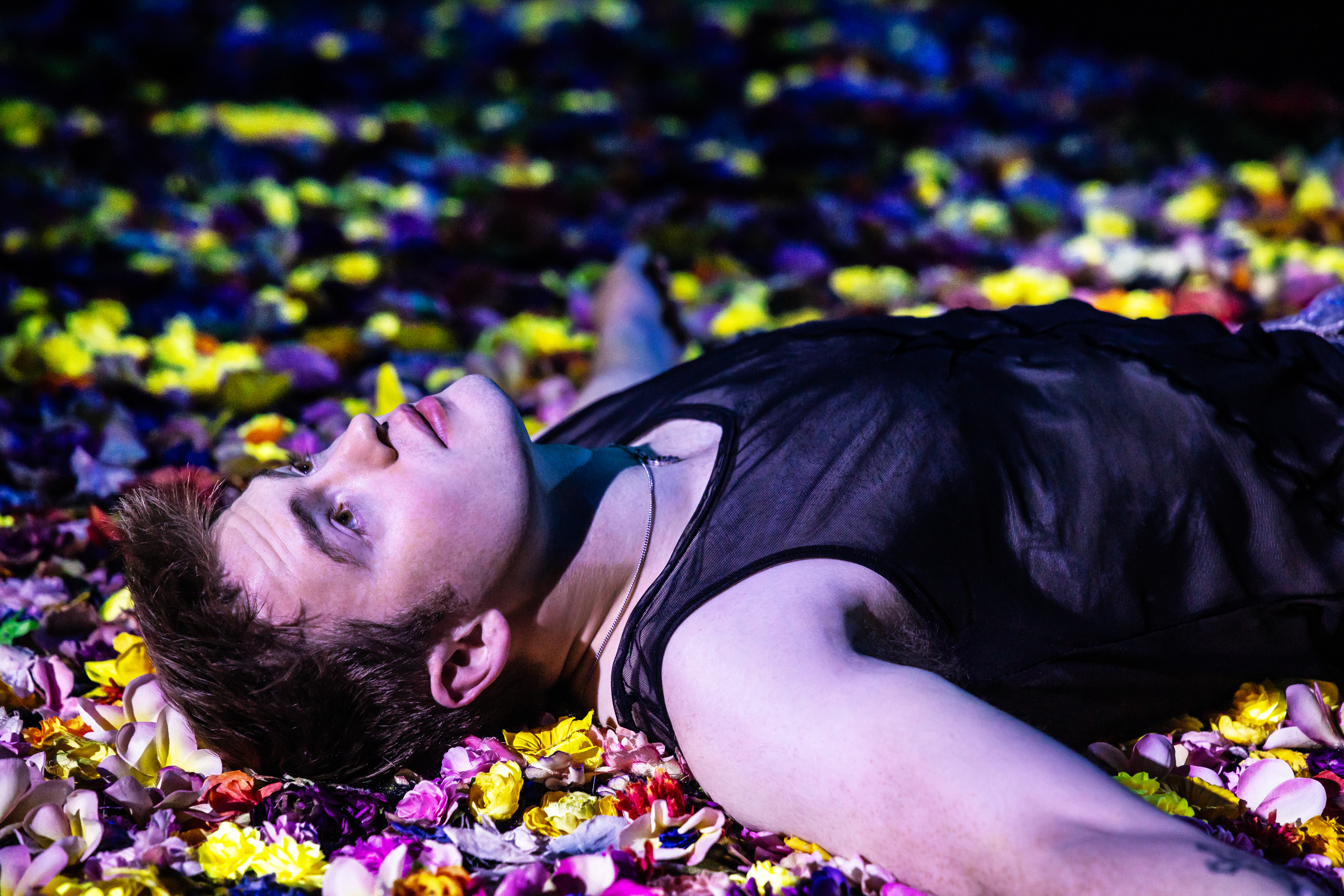 DF: We’re assaulted by the wrong-headedness from the ambling preshow. The stage is festooned with talismans of youth: stuffed animals and oversize packages of Haribo gummies. But when the actors arrive, they’re less children than snarky, disaffected club-kids. Does Gold mean us to see them as babies? Adults already bored with life? (God forbid, Furries?) Of course, none of this is right for the play, but never mind. Gold can’t even parse and stage the famous first sentence: there are no “two houses” here – it’s more like a mosh pit. And as for “dignity”… forget about it. All signs here point to a clueless middle-aged director who hasn’t the faintest idea what it means to be a teenager. There’s no light, no window… it’s just broken.
