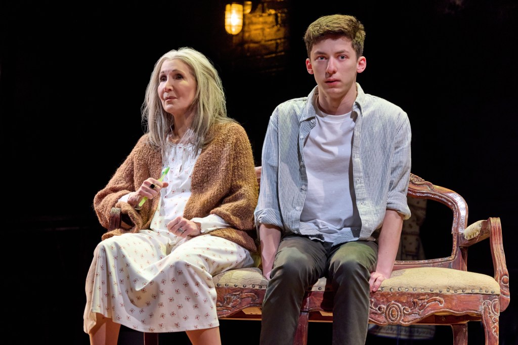 That might sound like navel gazing, and it almost literally is: the play begins with Harmon’s ringer, played by Andrew Barth Feldman, sitting in his underwear, parsing a phone call from his grandmother Renee (Joanna Gleason). Ninety-four and dying of pancreatic cancer, she implores her grandson to write a play about the fraught relationship between his mother, Ellen (Jeanine Serralles) and her unseen, estranged sister Susan. “Make it as bitter and vitriolic as possible,” she recommends.